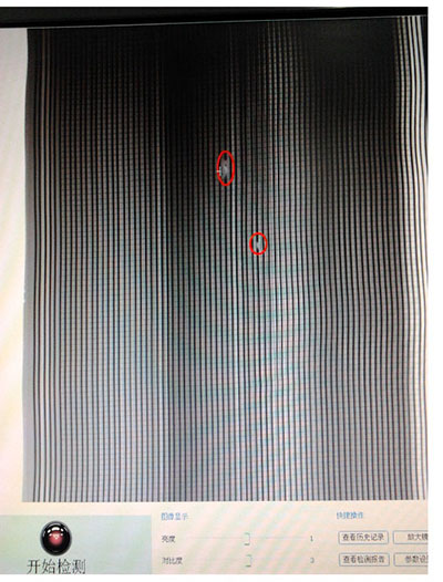 4)系統自動采集皮帶圖像,采用“圖譜法”,皮帶內部有缺陷時,可以直接在圖像上標出來,可出具檢測數據、視頻圖像及報表打印。